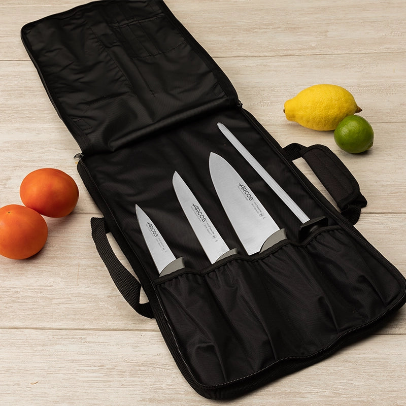 La bolsa para cuchillos Arcos de 4 piezas 460 x 275 mm es un complemento ideal para llevar tus cuchillos cómodamente y con seguridad. *Cuchillos no incluidos