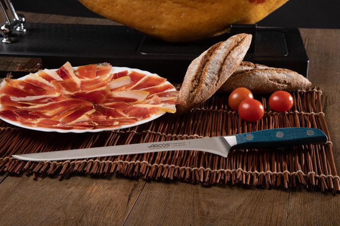 - Incorpora estos cuchillos: mondador de 100 mm, de verduras de 130 mm, deshuesador de 160 mm, Rocking Santoku de 190 mm y jamonero de 250 mm.
