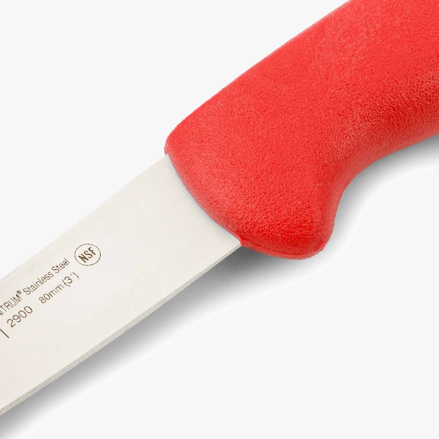 Cuchillo Mondador serie 2900 80 mm rojo. Es pequeño, ligero, manejable y presenta una punta central. Es un regalo para los chefs.
