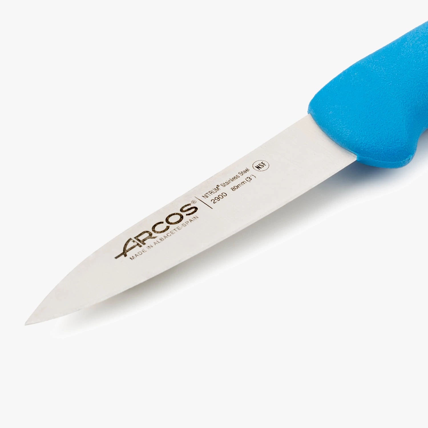 El cuchillo Mondador serie 2900 de 80 mm se distingue por los colores del mango. En este caso, el tono es azul. Se ha diseñado especialmente para cortar, pelar y limpiar las frutas, verduras y tubérculos. Arcos es una empresa pionera en el ramo de los cuchillos. Comenzó en el año 1734. Sus expertos hacen cuchillos y otras herramientas o utensilios de cocina.