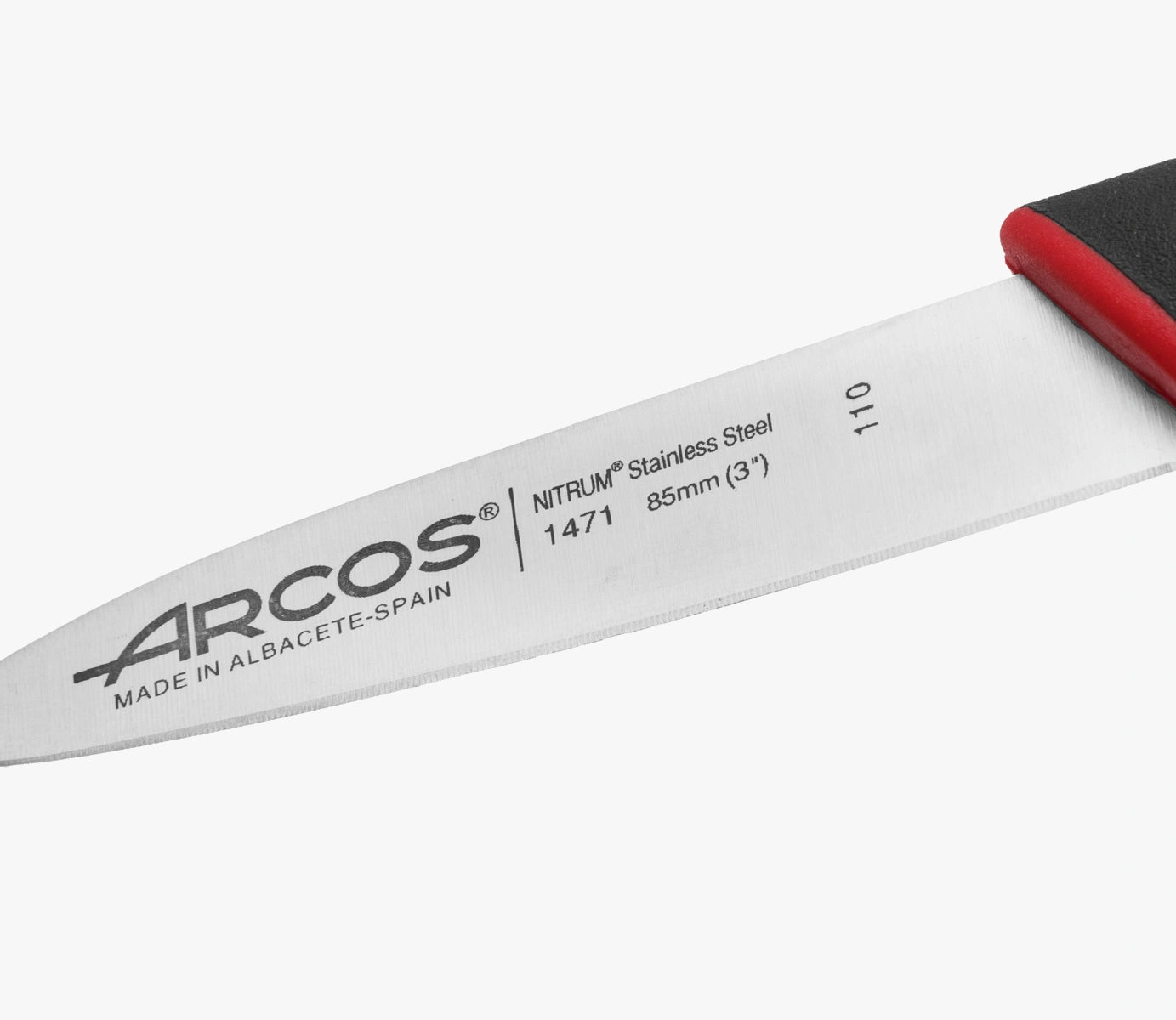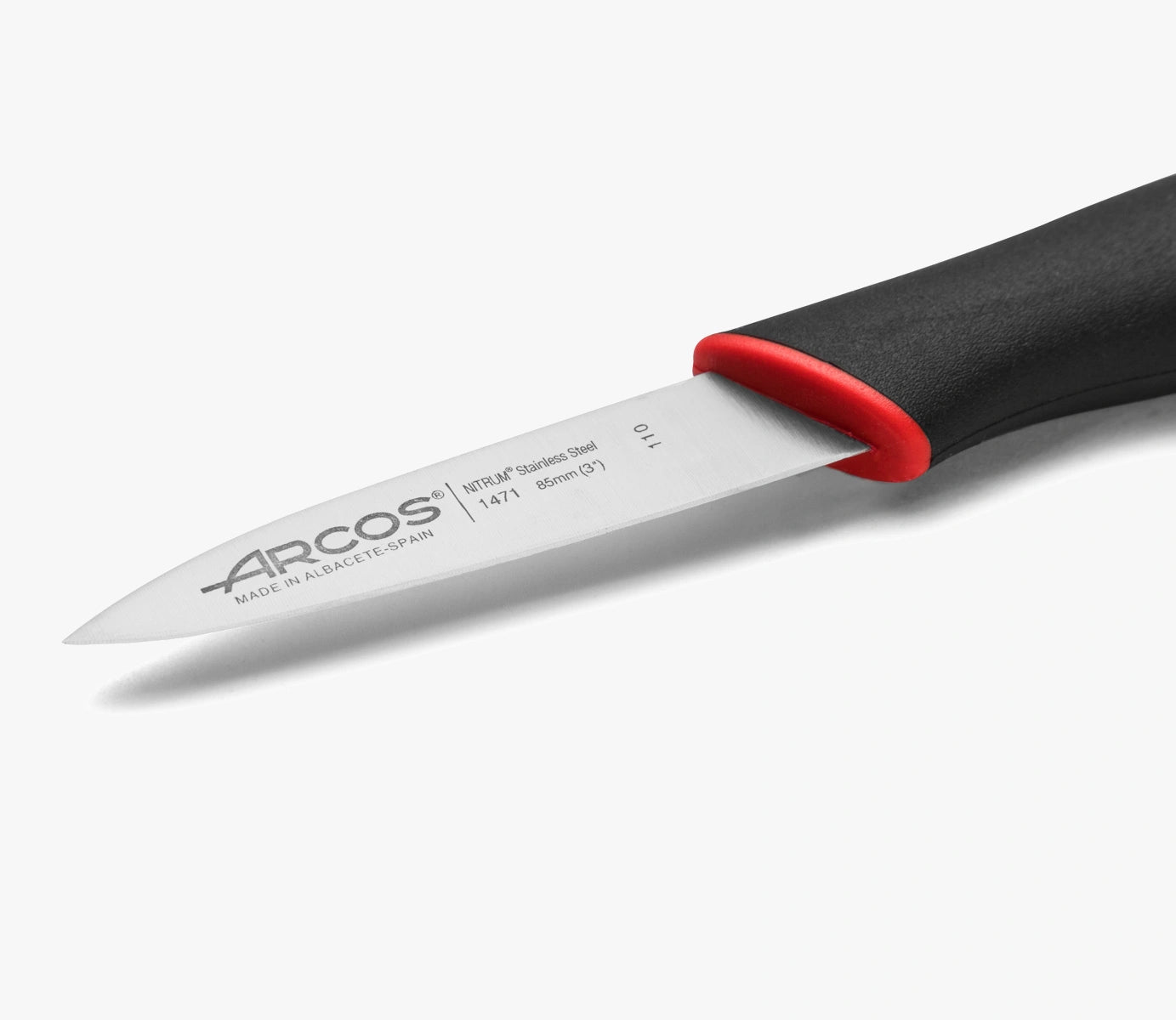 Cuchillo Mondador Dúo de Arcos de 85 mm, especial para pelar y cortar frutas. Constituye un pequeño, pero potente auxiliar de cocina.