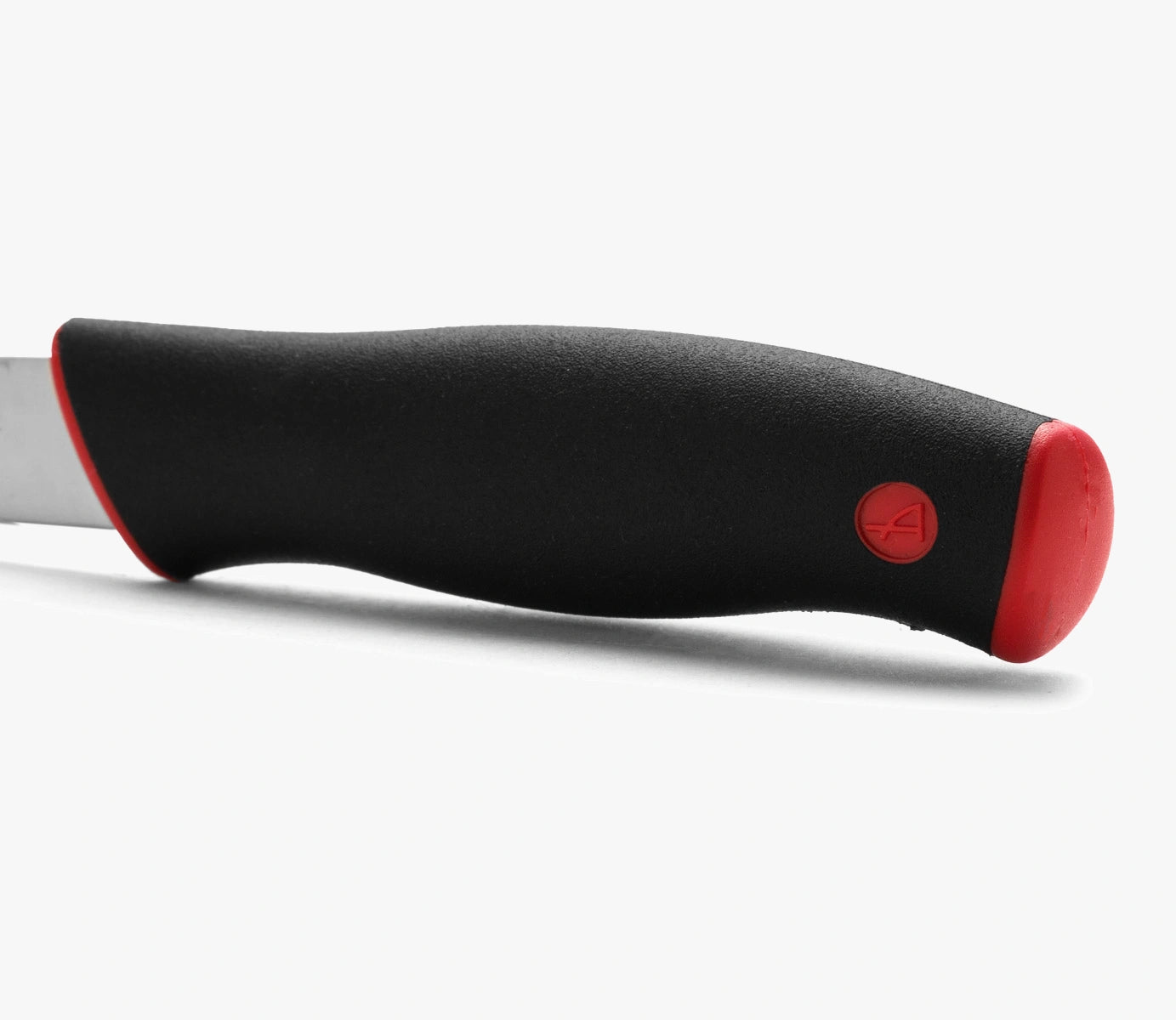 - Con mango ergonómico que consta de una parte interna dura, de polipropileno, unida a la hoja del cuchillo.
