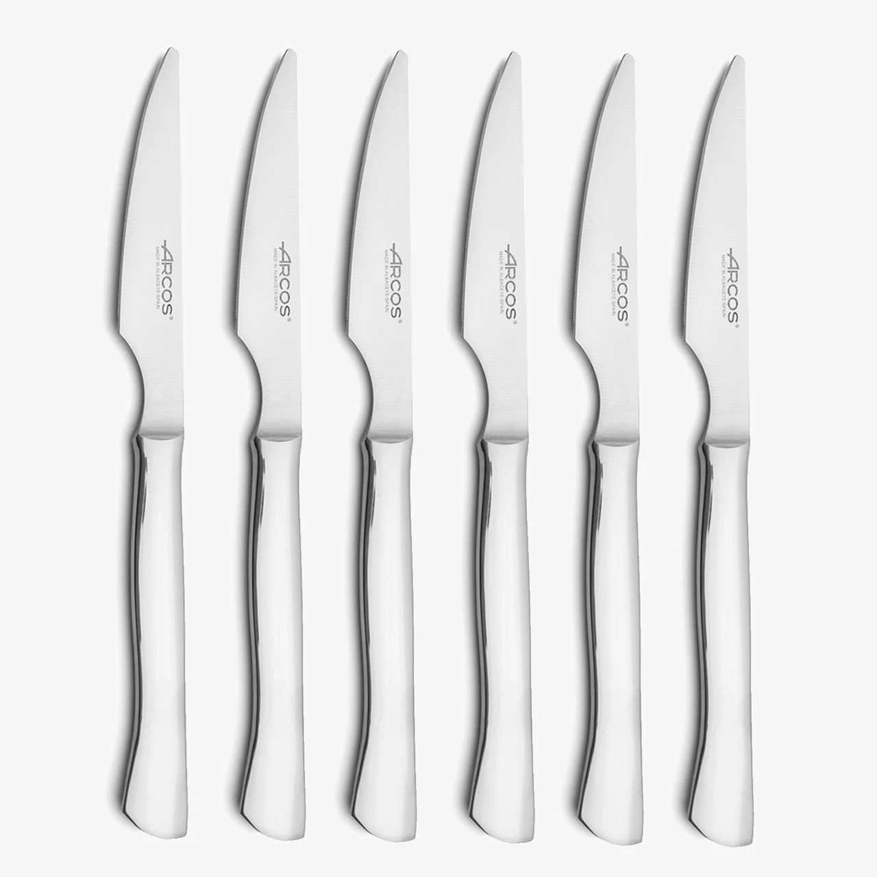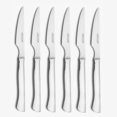Calidad, comodidad y efectividad en estos cuchillos chuleteros monoblock de la empresa Arcos. Es un juego de 6 piezas elaboradas en acero inoxidable.