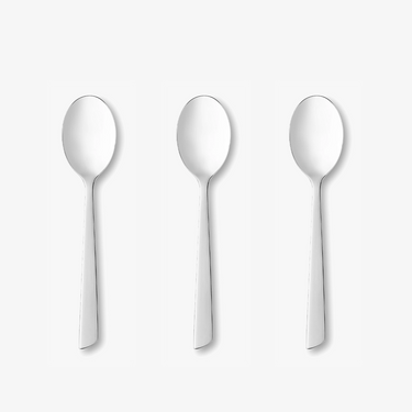 - Cucharas compactas, pequeñas y livianas, estas seis cucharas moka poseen un espesor de tan solo 2,5 mm, una longitud de 115 mm y un peso de 84 gramos.