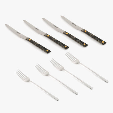 Con estos 4 cuchillos y 4 tenedores en tu mesa, disfrutarás de una experiencia culinaria excepcional. Su elegancia y sutileza añadirán un toque especial a tus platos preferidos, mientras que su calidad y resistencia asegurarán que sean compañeros duraderos en tus comidas.