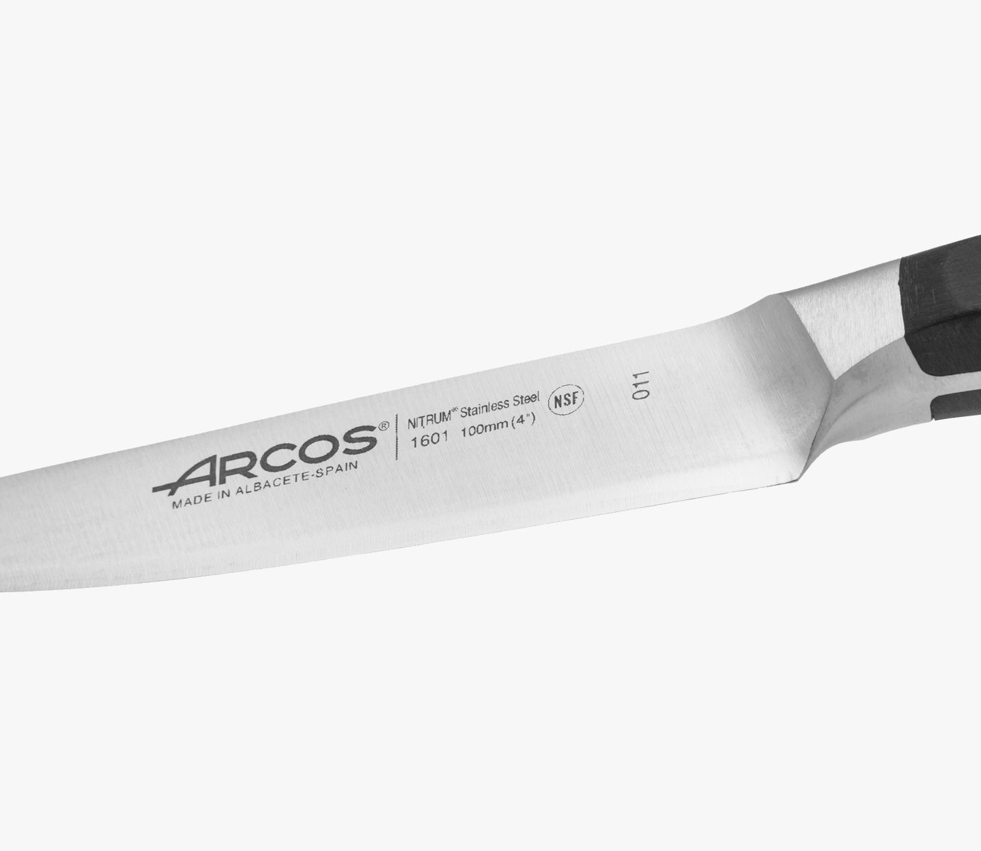 Las cuchillas están fabricadas mediante forja en caliente de acero inoxidable Nitrum® respetuoso con el medio ambiente. Es único, exclusivo y solo se utiliza para cuchillos Arcos. Se distingue por sualta eficiencia y solidez. No exige el afilado frecuente.