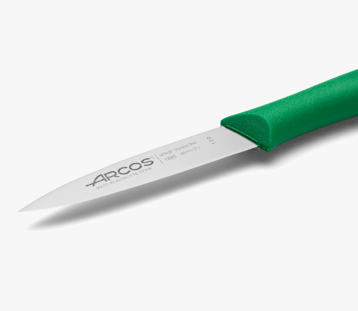 - Durabilidad: Su hoja de 85 mm es de acero inoxidable NITRUM®, exclusiva de Arcos, logra que dure más el filo. Además, proporciona mayor poder de corte y dureza.