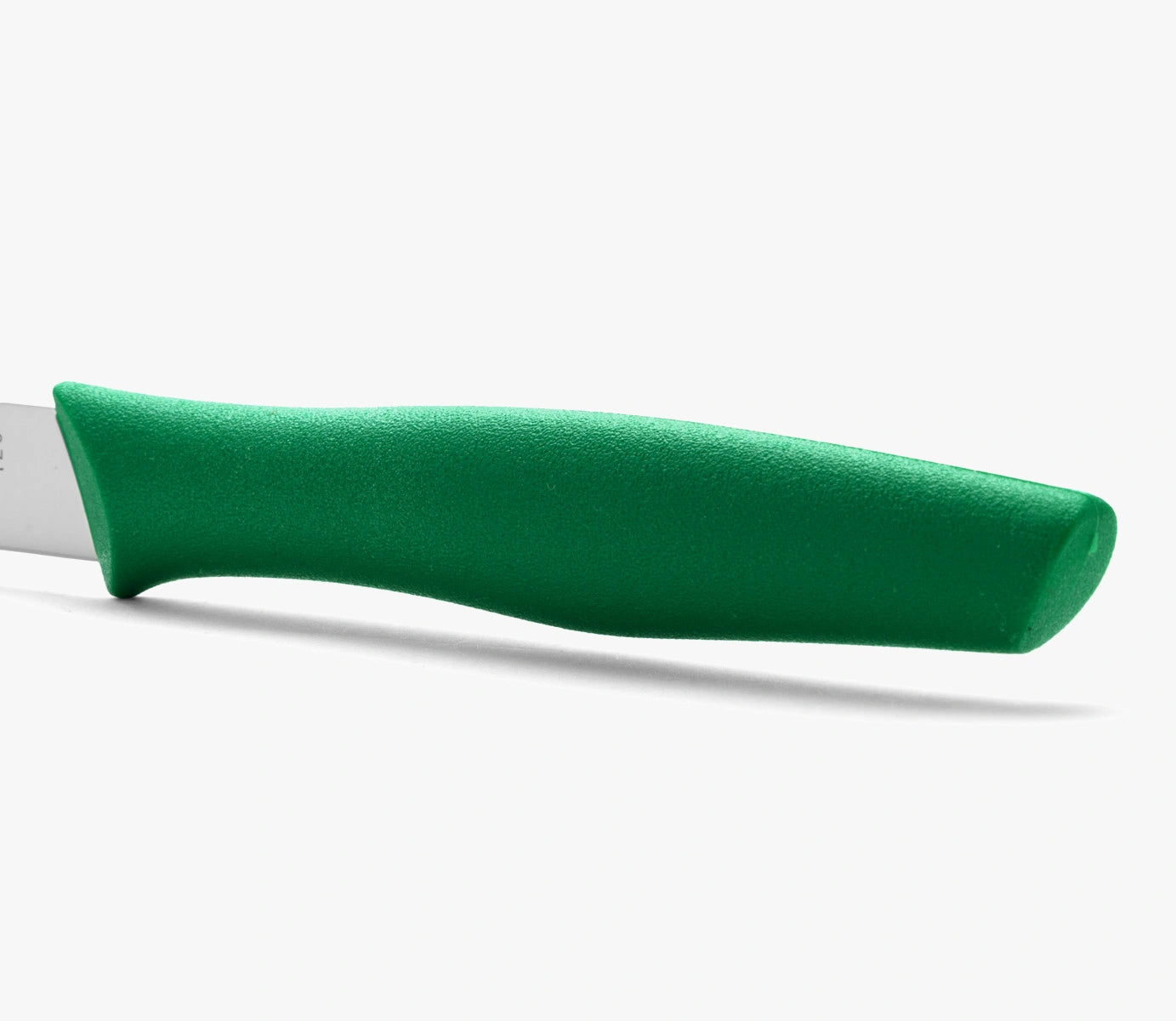 Cuchillo mondador de la serie Nova de 85 mm en color verde. Útil para cortar y pelar frutas.