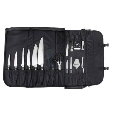 - Herramientas de corte: cuchillo mondador 100 mm, deshuesador 160 mm, verdulero 130 mm, cocinero 150 mm, cocinero 250 mm, cuchillo mesa y santoku 190 mm.