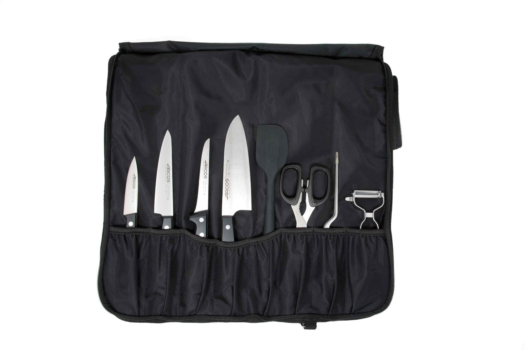 Es un pack con una serie de utensilios que resultan indispensables para quienes hacen el curso de chef. Todos sus artículos se encuentran fabricados con la tecnología, tradición y calidad propia de Arcos, por lo que son muy duraderos y resistentes.