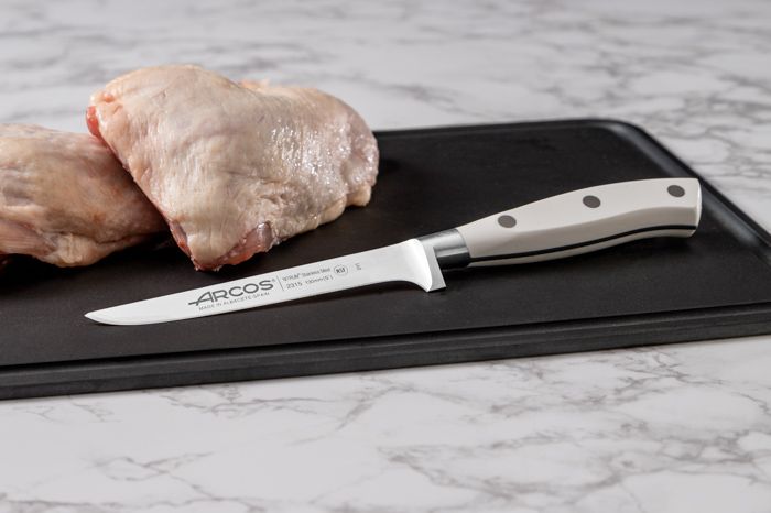 - Cuchillo deshuesador con una hoja de 130 mm. Permite separar la carne del hueso con facilidad gracias a su filo de gran precisión.