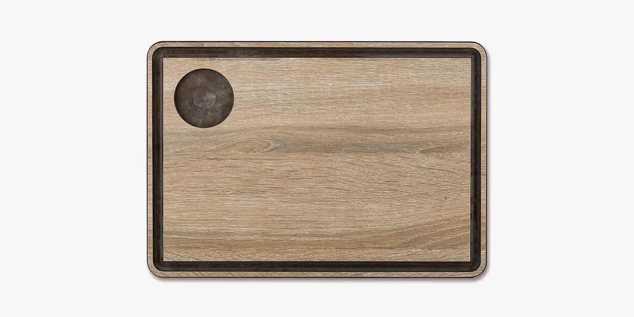 La tabla salsera marrón color madera con canal 330 mm x 230 mm proporciona una superficie lisa, resistente y estable para cortar.