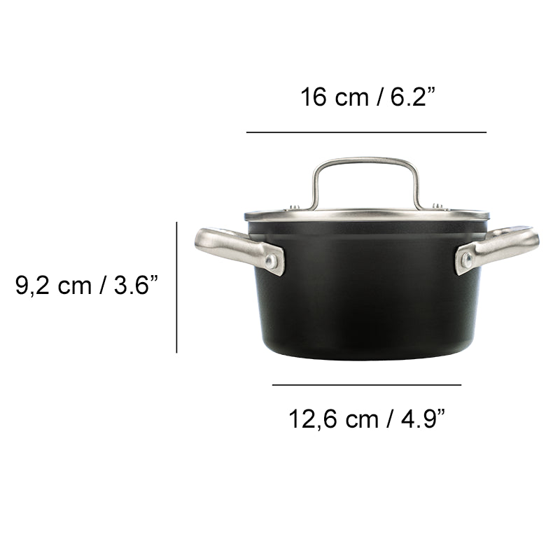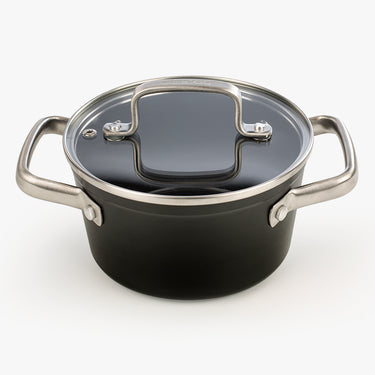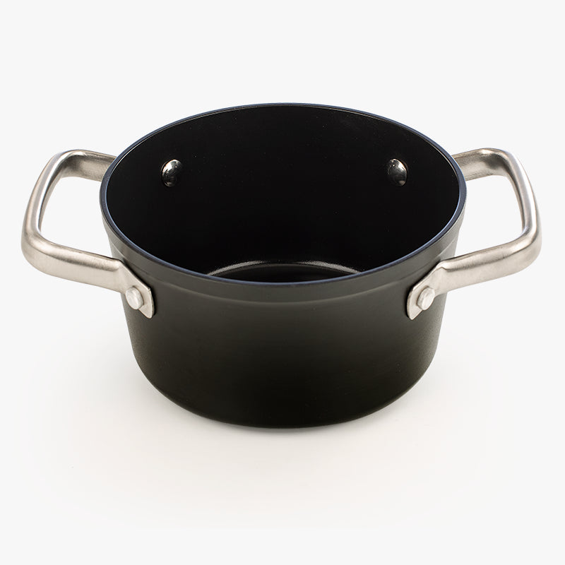 A caçarola Samoa antiaderente cerâmica de 16 cm redefine a cozinha saudável em formato compacto. O corpo em alumínio forjado garante uma cozedura rápida e uniforme.
