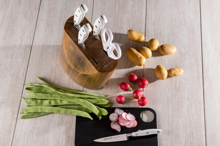 O conjunto da série Riviera Blanc é ideal para usar na cozinha devido à sua grande versatilidade e utilidade ao cortar. Permite fazer cortes tanto em carnes grossas quanto em frutas de todos os tamanhos, já que cada faca do conjunto tem uma função específica. Além disso, possui um design elegante que combina com qualquer estilo de cozinha.