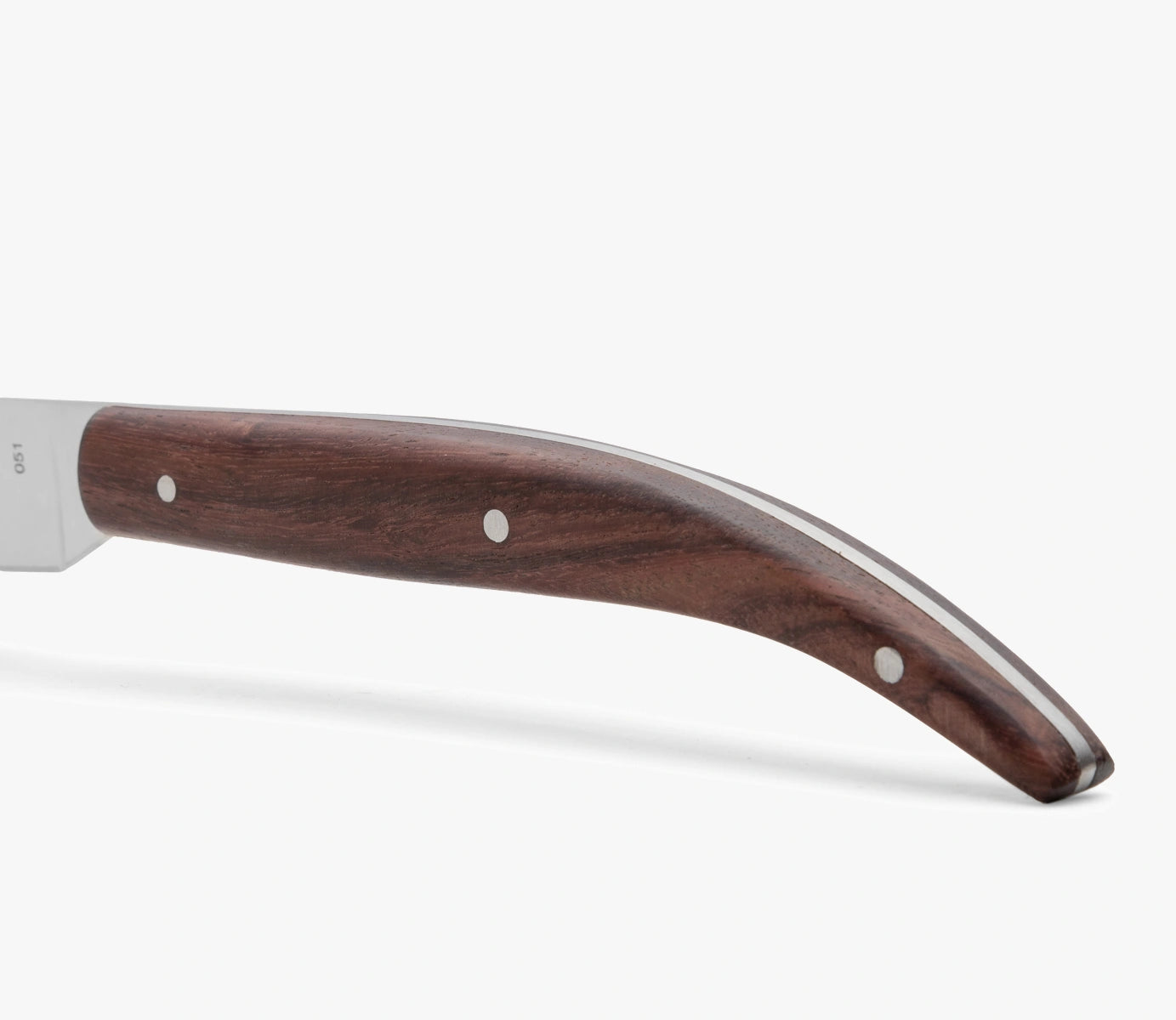 - O cabo é de madeira de palissandro, caracterizado por ser ergonômico e leve. Além disso, possui uma estética elegante graças às veias escuras.