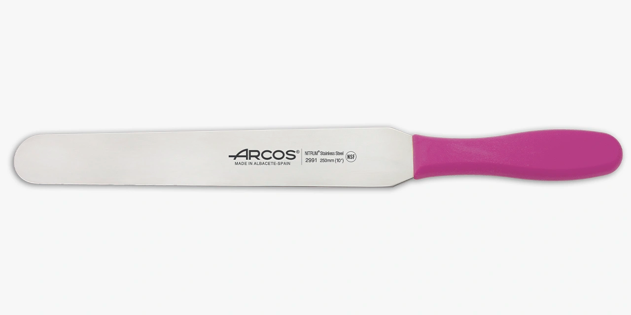 A Espátula de Confeiteiro Série 2900 Cor Fúcsia 250 mm é um utensílio fabricado pela Arcos, uma empresa de tradição e modernidade. Seu uso auxilia na preparação e decoração de uma grande variedade de sobremesas. Possui um design chamativo na cor rosa.