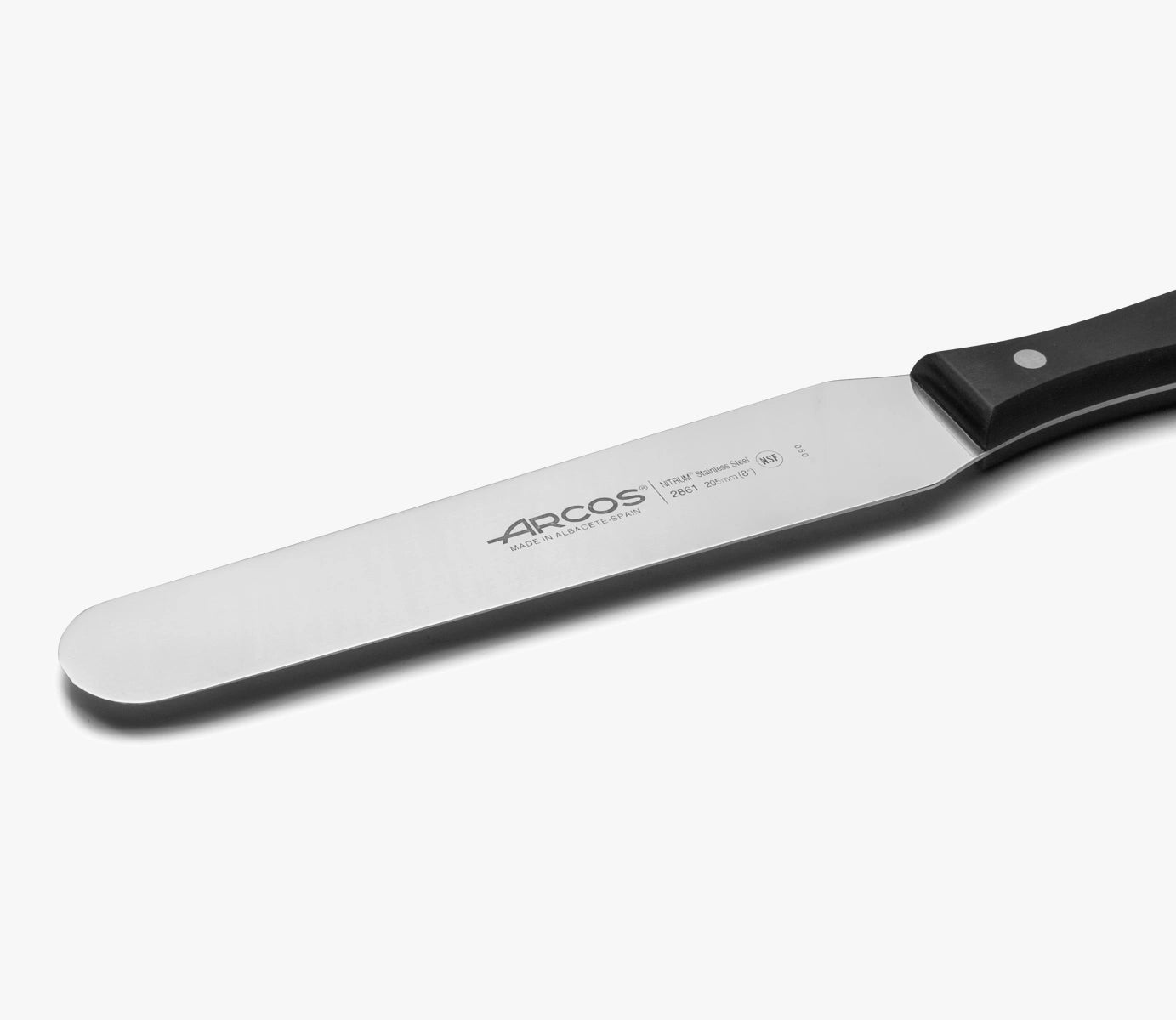 Esta espátula de confeiteiro de 205 mm da série Universal da Arcos é uma ferramenta de confeitaria muito eficiente para trabalhar com bolos, tortas e outras sobremesas. Possui pontas arredondadas, sem fio, o que facilita o processo de preparação de sobremesas.