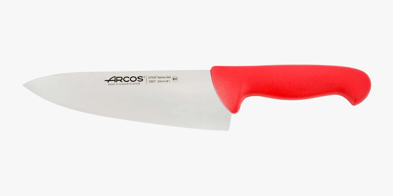 A faca de chef série 2900 com cabo vermelho é uma ferramenta de cozinha especialmente elaborada para cortar carne.