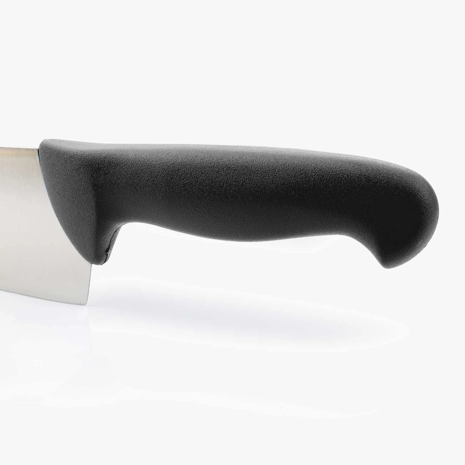 - Controle higiênico e sanitário. A cor preta do cabo desta faca serve para identificá-la e ser utilizada para o corte de legumes, carnes e ossos.