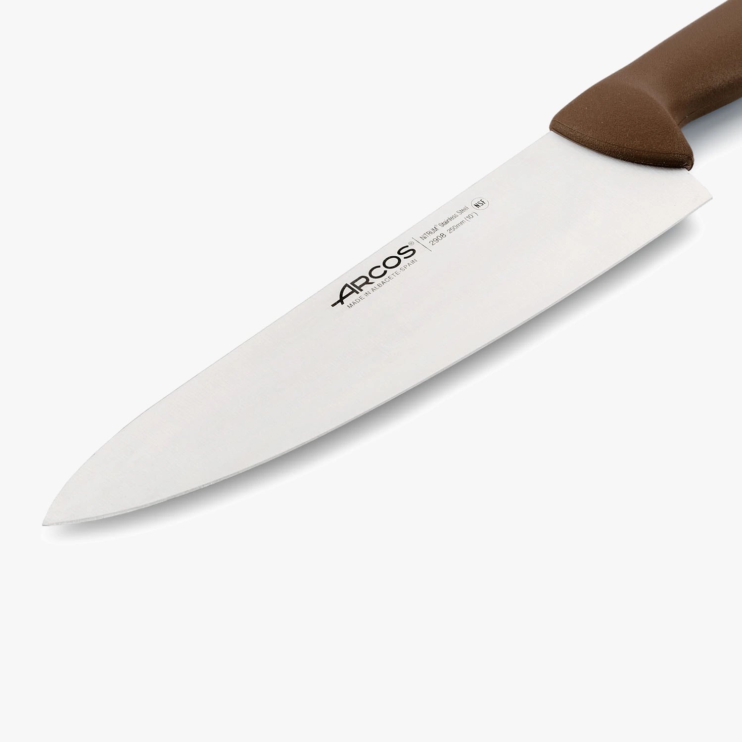 - A cor marrom na alça segue as normas da NSF para classificar as ferramentas e evitar a contaminação cruzada. Neste caso, identifica-o como uma faca para processar legumes.
