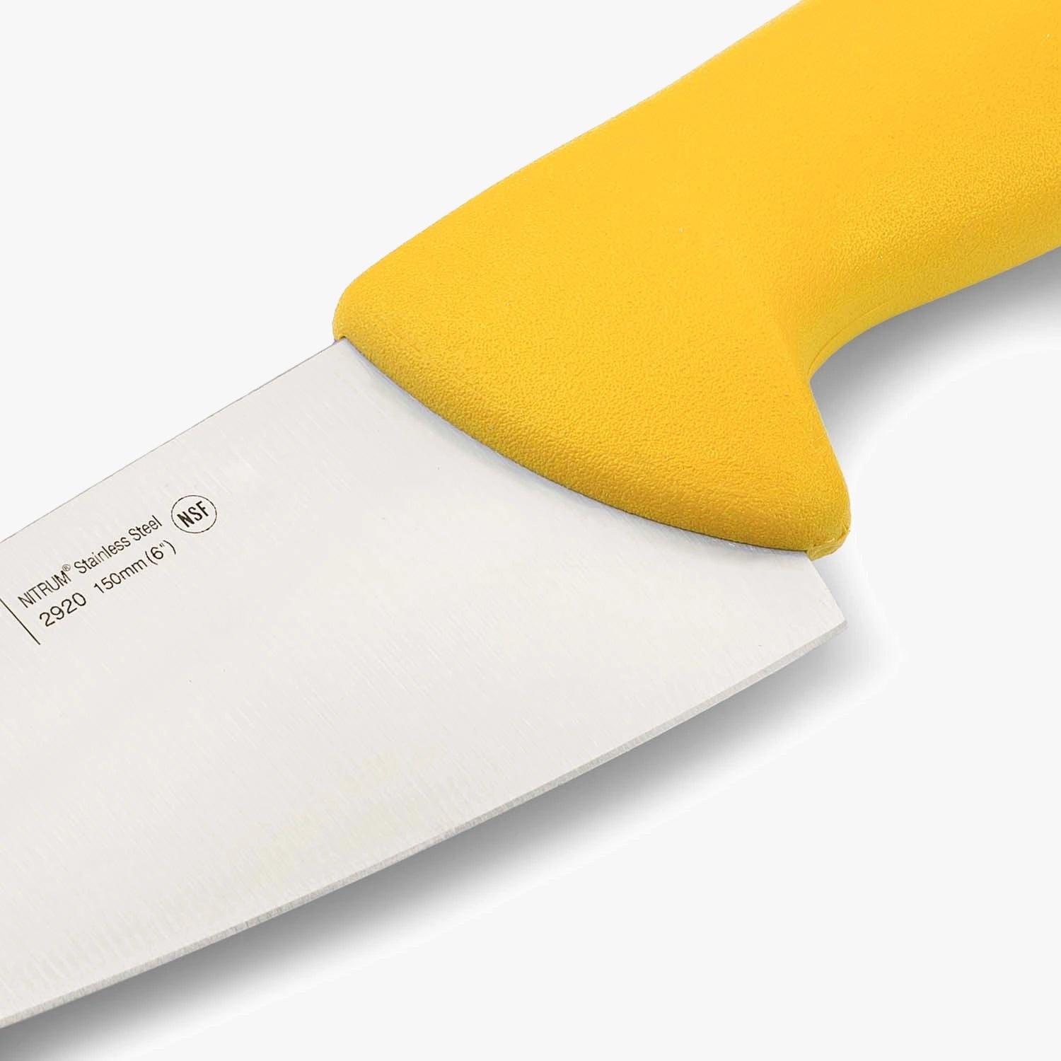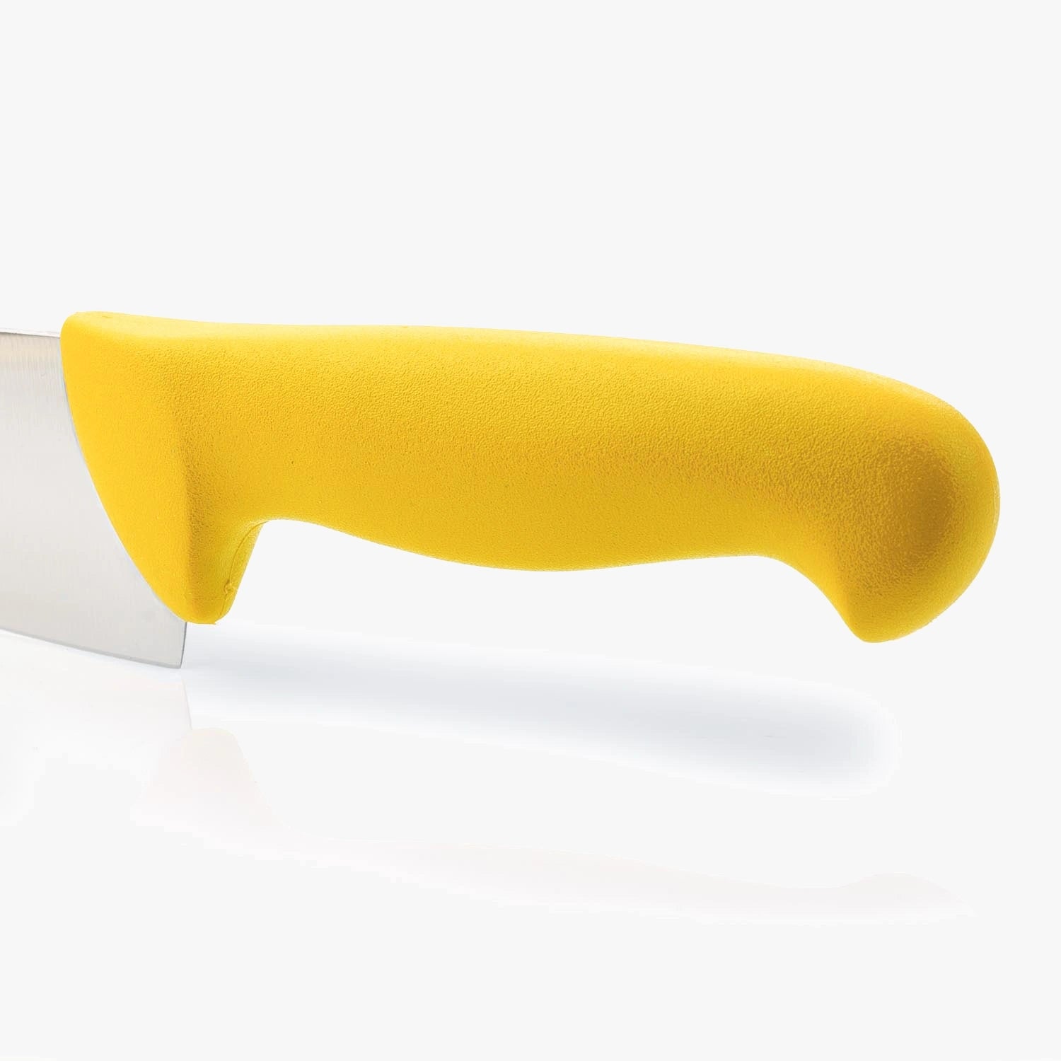 A faca de chef amarela da Série 2900 é para alimentos cozidos. Com lâmina larga e fio liso de aço inoxidável NITRUM®.