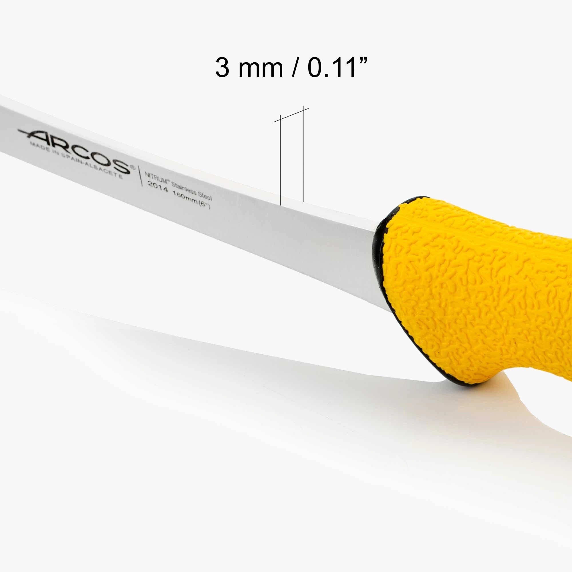 O corte de carne rígido Duo Pro da ARCOS, com uma lâmina de 160 mm feita de aço NITRUM®, oferece uma precisão e durabilidade excepcionais. Perfeito para cortes limpos e controle absoluto na indústria de carne.