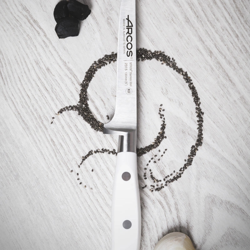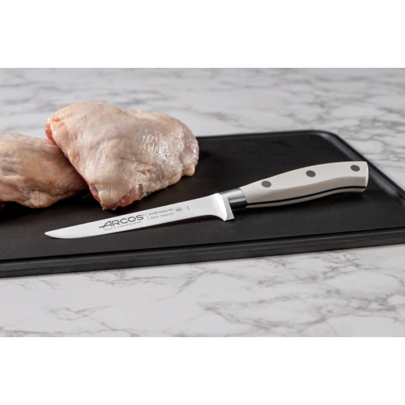 A faca da série Riviera Blanc será muito útil na cozinha, devido aos seus múltiplos benefícios. Permite separar a carne do osso com facilidade graças à sua lâmina curva e fina.