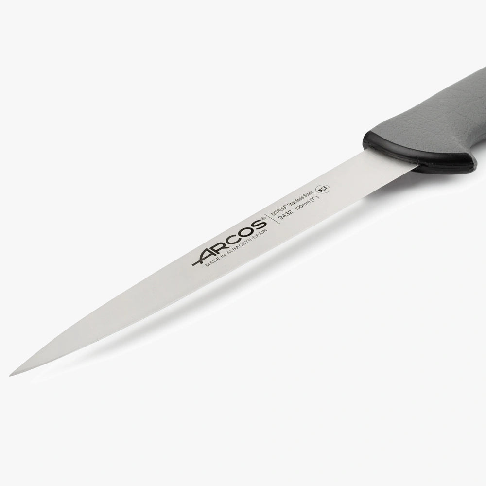 A faca para filetar Série Colour Prof 190 mm, confeccionada em aço inoxidável NITRUM®, é ideal para filetar carnes e peixes.