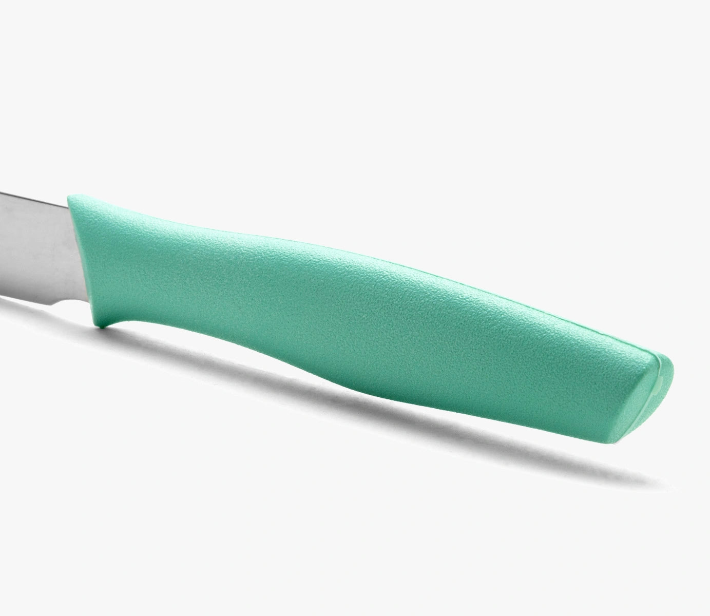 Esta faca para manteiga Série Nova de 90 milímetros foi fabricada na Espanha, através de um processo de injeção direta realizado por mãos com grande experiência no setor. O resultado é um modelo muito sólido e robusto. Seu cabo, na cor menta, será fácil de combinar.