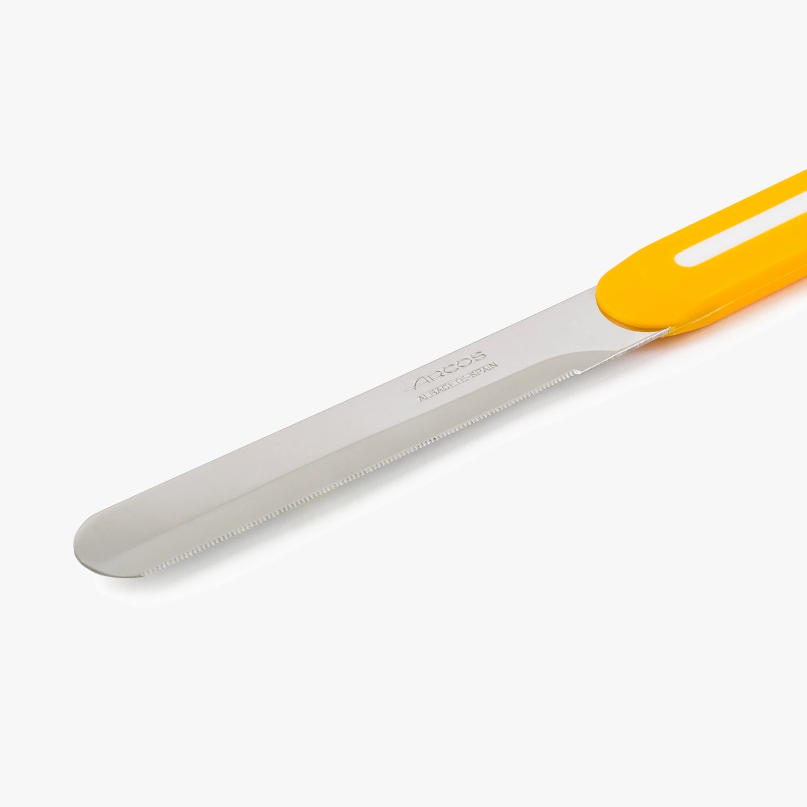 A faca outdoor da série B-Line da Arcos 100 mm destaca-se por sua poderosa lâmina e o particular cabo na cor laranja.