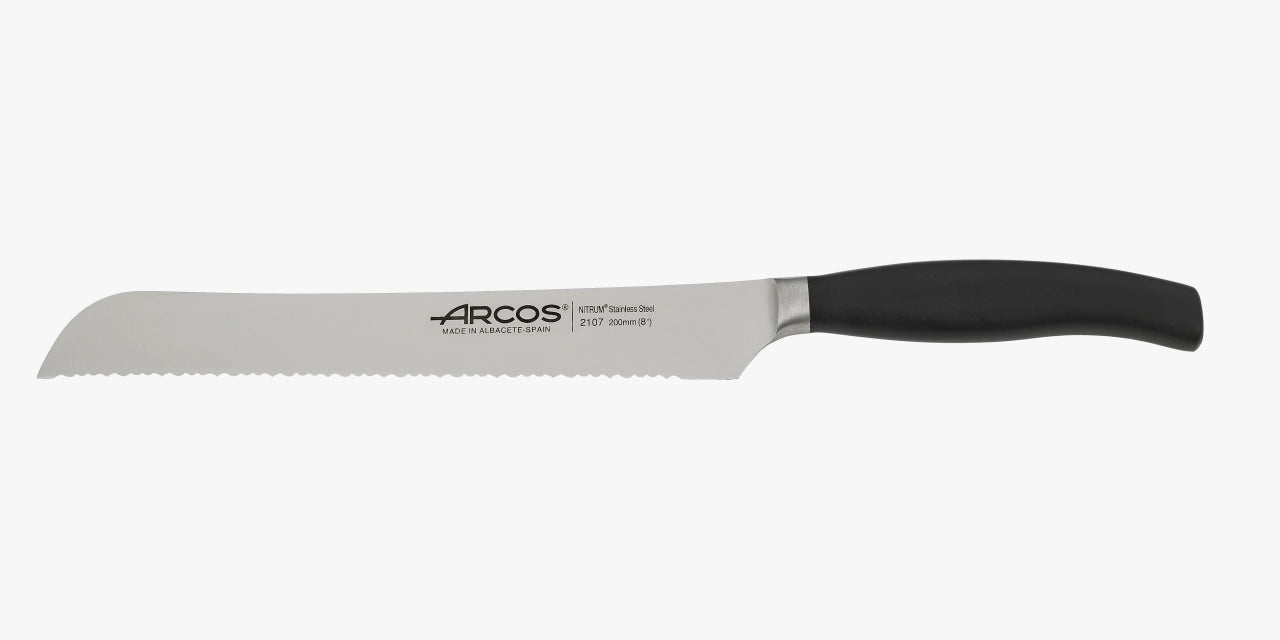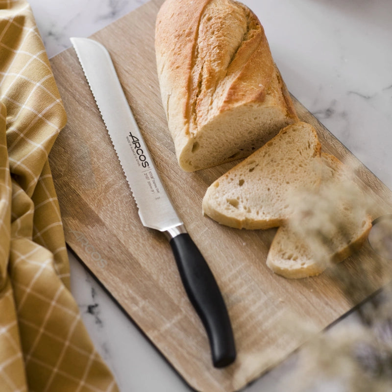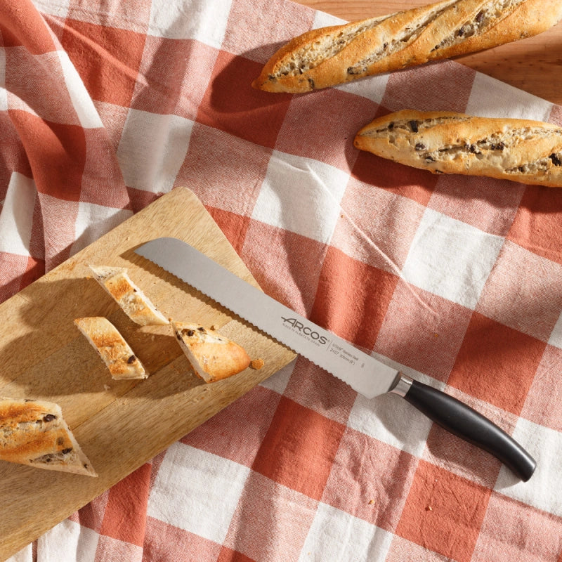 As facas que fabricamos em nossas instalações em Albacete têm 10 anos de garantia. A Arcos leva o mundo da cozinha profissional para todas as casas. Adquira sua faca de pão!