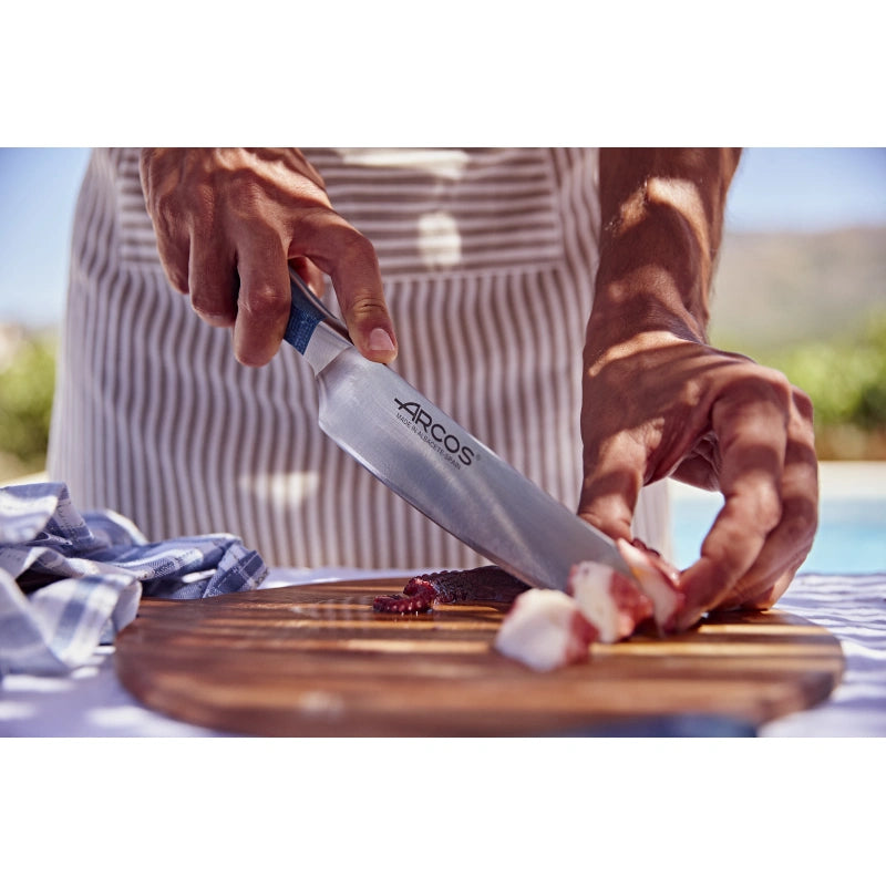 - Forjado en Albacete en una sola pieza, con filo seda y extraordinario poder de corte gracias al acero inoxidable premium NITRUM.