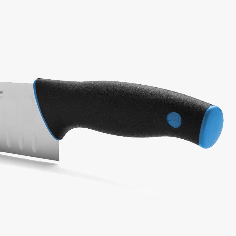 A Faca Santoku Série Dúo 180 mm é um utensílio para realizar cortes limpos em peixes, carnes e uma variedade de vegetais.