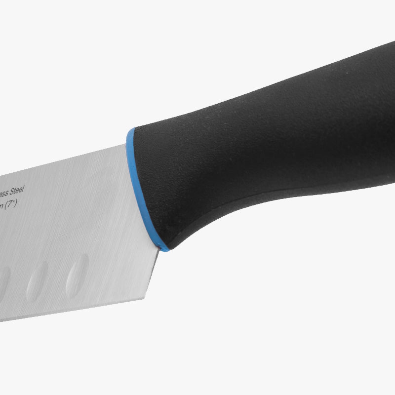 O Faca Santoku Série Dúo 180 mm é feito de uma lâmina de aço inoxidável com uma borda lisa. Serve para cortar carnes, peixes e legumes sem que eles grudem na superfície da lâmina. Possui excelente dureza, maior força de corte e uma longa vida útil.
