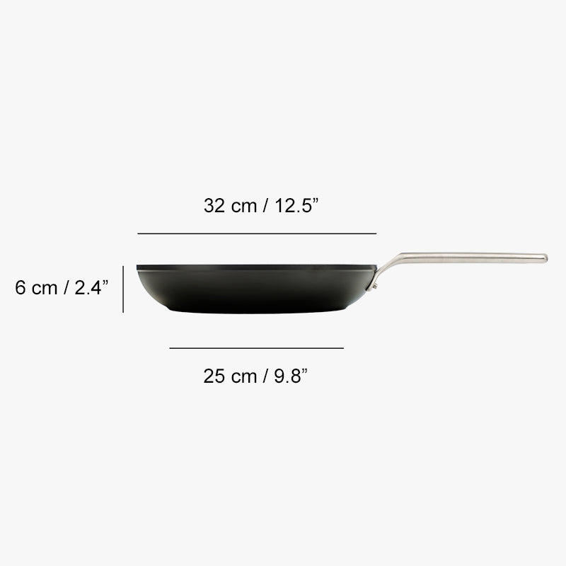 Domine as grandes preparações com a frigideira de maior dimensão da gama: 32 cm de superfície cerâmica ultra-resistente, concebida para um desempenho profissional e uma cozinha saudável, sem tóxicos. O diâmetro da base deste produto é de 25 cm.