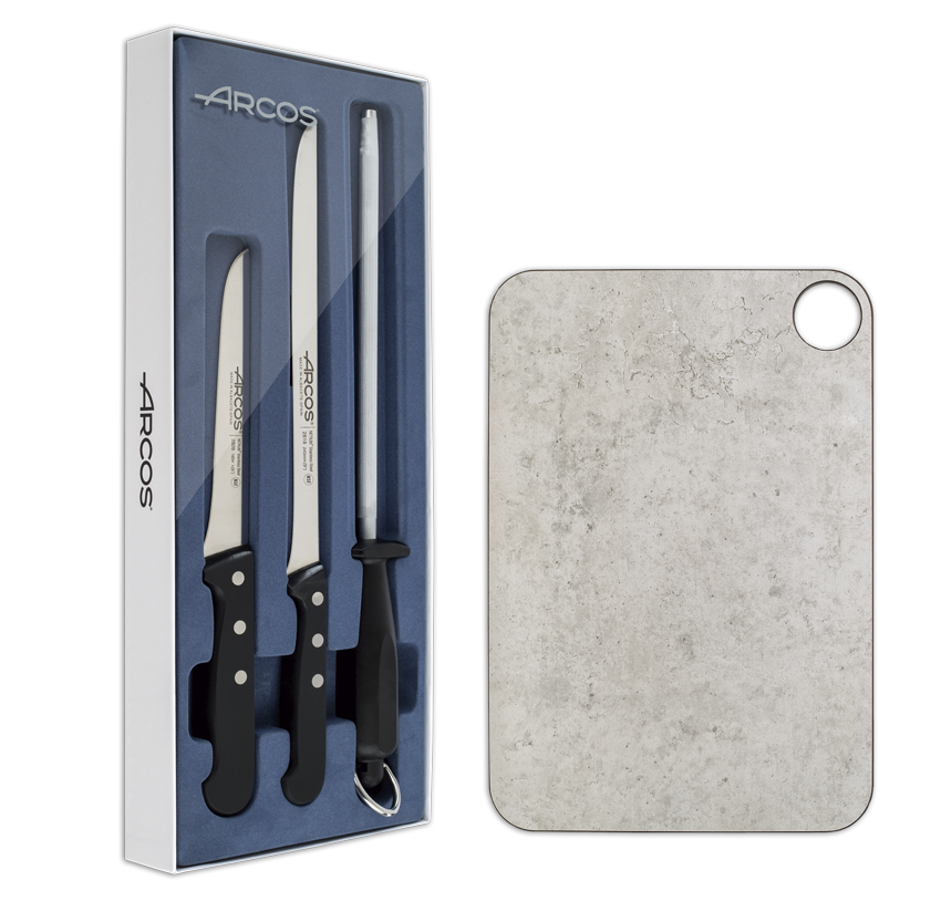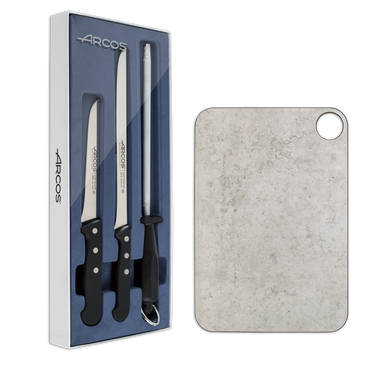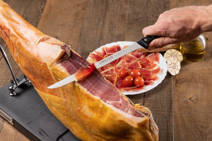El set jamonero serie Universal y tabla Arcos tiene todo lo que necesitas para cortar y presentar el jamón con elegancia.