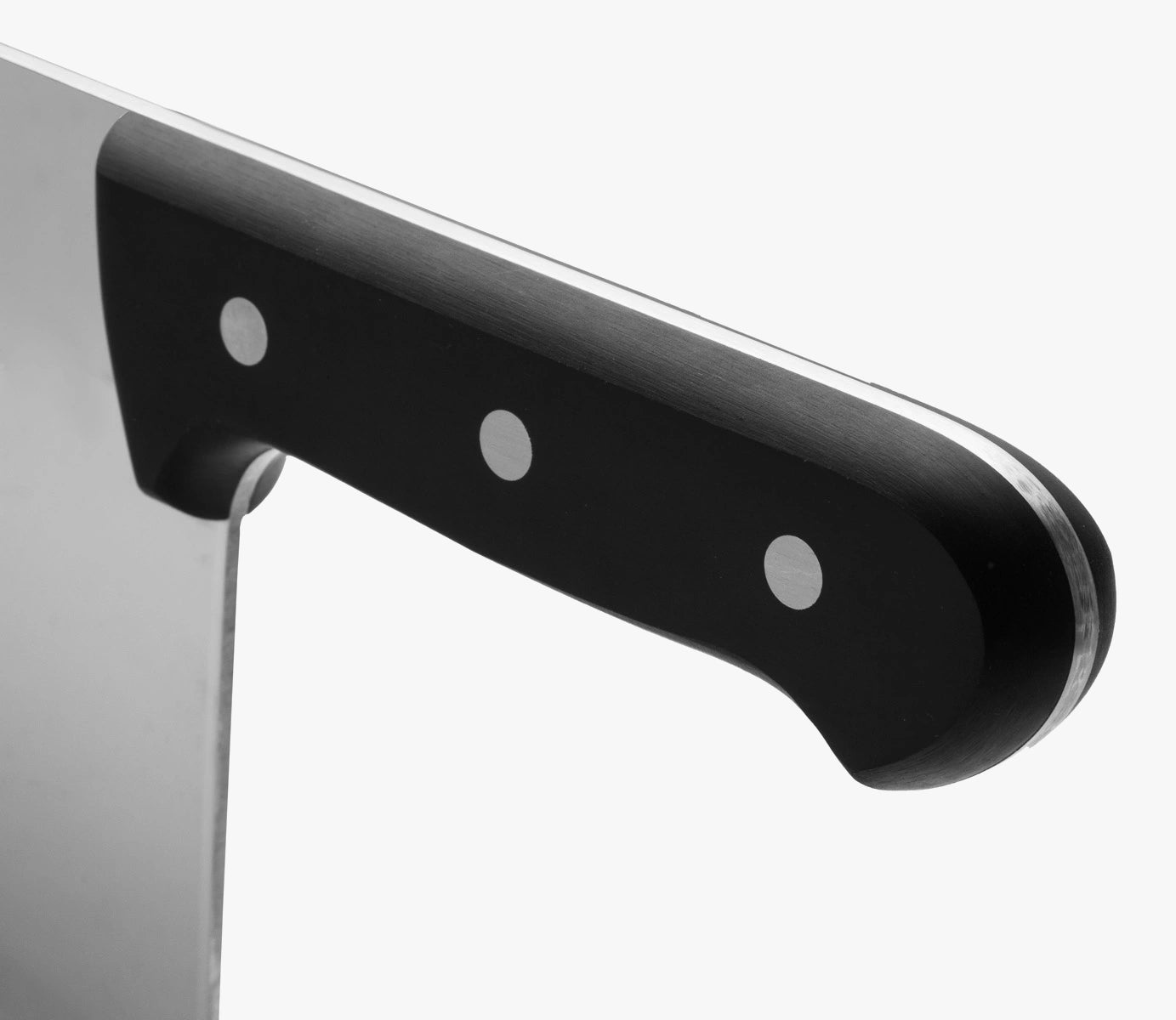 O machado de cozinha Série Universal 250 mm tem uma lâmina sólida e larga. Sua forma retangular é adequada para cortar pedaços volumosos de carne e costeletas.