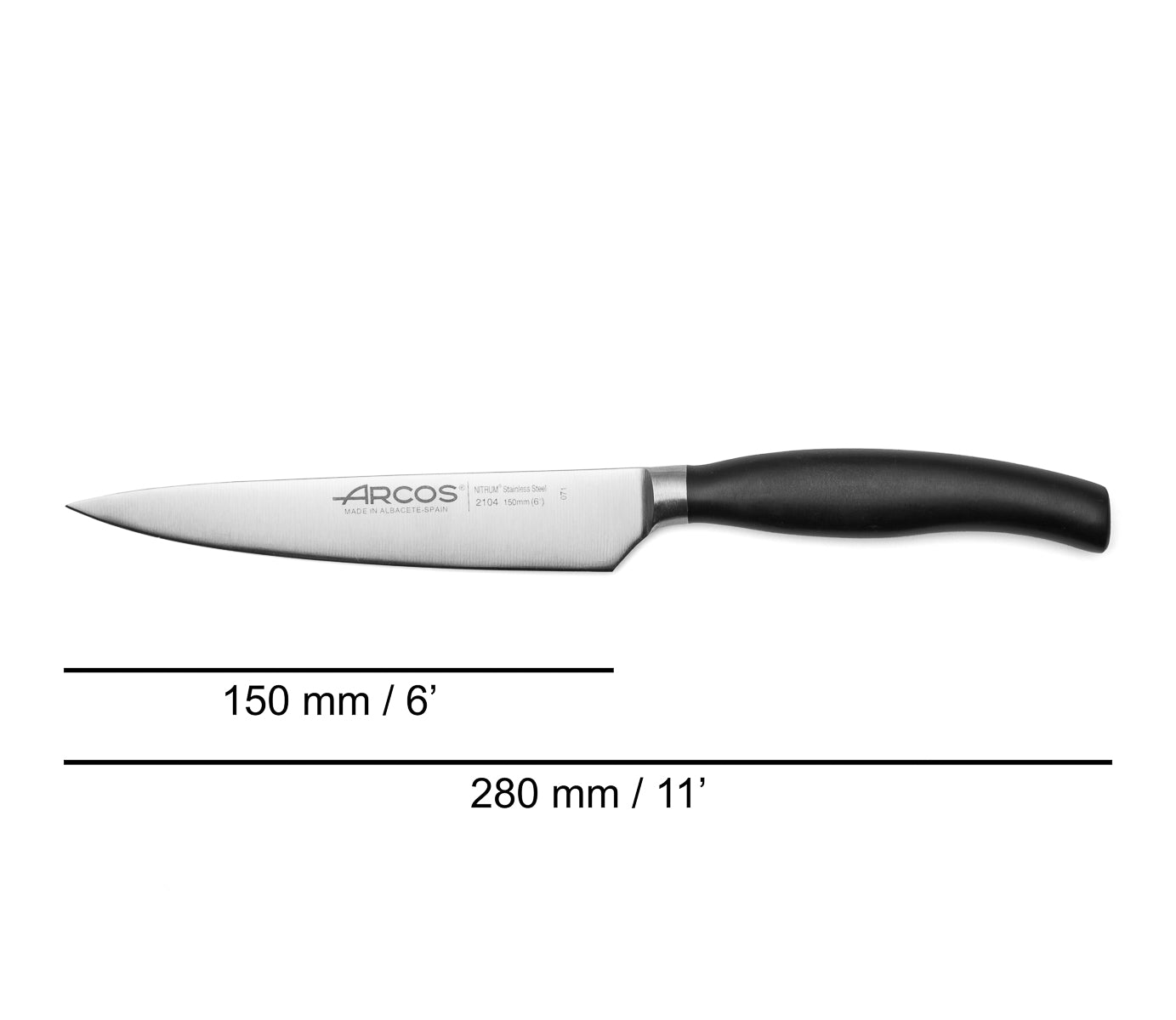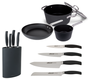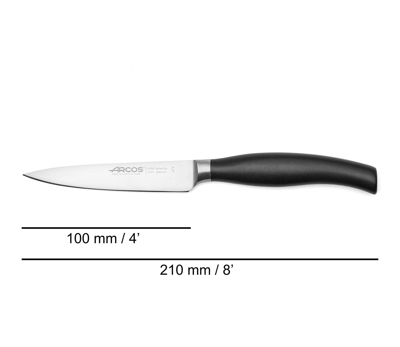 - 4 precisos cuchillos de la serie Clara: Cuchillo mondador o "puntilla" (100 mm), cuchillo de cocina (150 mm), cuchillo cocinero (200 mm), cuchillo panero (200 mm). Cada cuchillo Clara tiene una hoja forjada de acero NITRUM®, que lo dota de dureza, poder y durabilidad. Mango de polipropileno unido a la hoja por inyección.