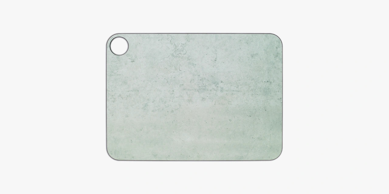 A tábua de corte cinza com suporte 377 X 277 mm oferece uma superfície ideal para cortar sem degradar o fio da faca.